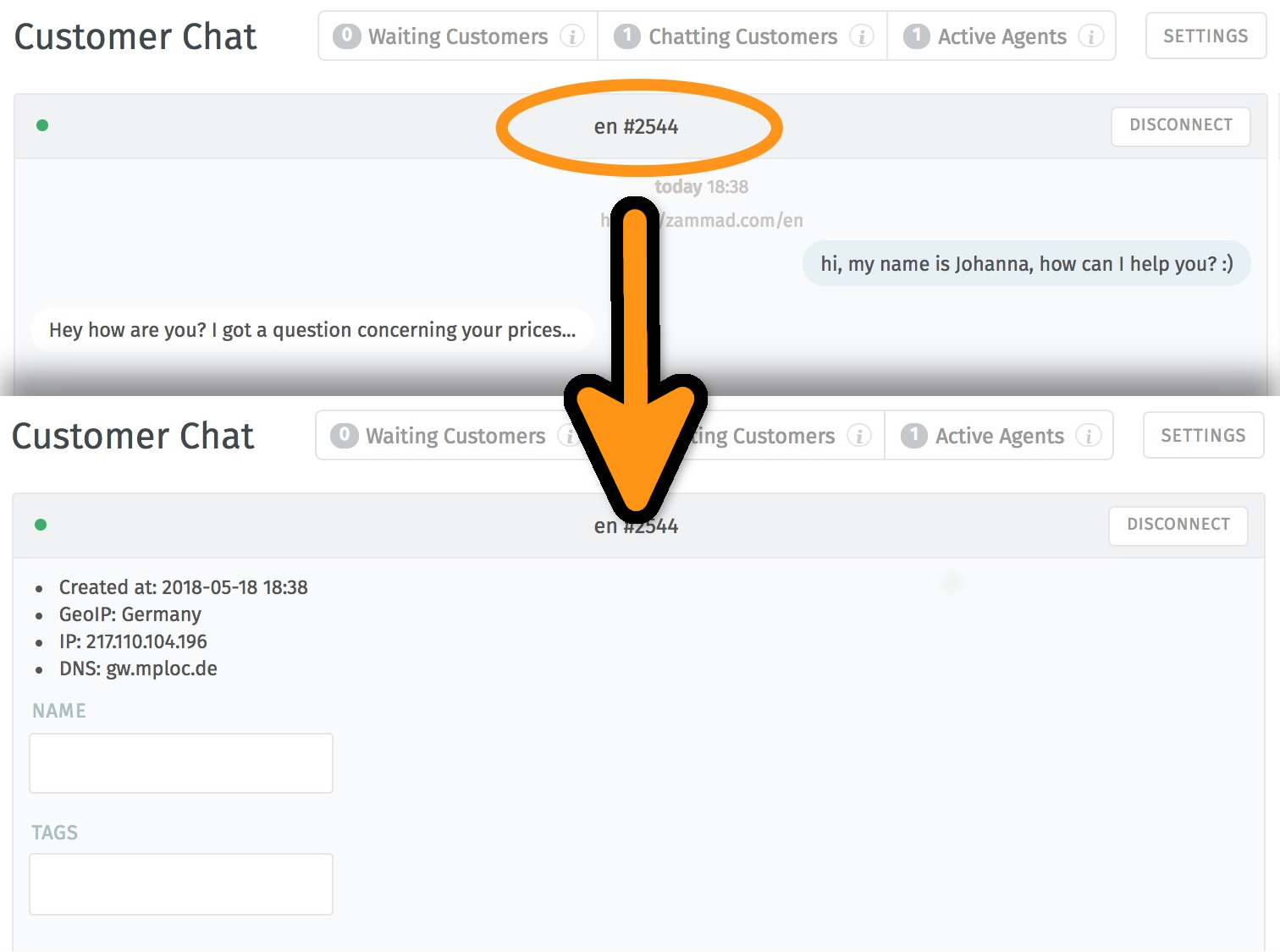 El título de un ticket es diferente según el canal por el que llegó. Puedes encontrar el título en la barra lateral y en el área superior en la vista del ticket. Si el título no es muy significativo, puedes cambiarlo haciendo clic en el título en la vista de un ticket.