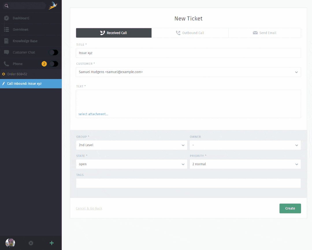 Sipgate es una solución SaaS para telefonía por internet. La integración de Zammad para Sipgate proporciona a los usuarios una visión general detallada de las llamadas. Si tienes un cliente que quiere conectarse con un agente determinado, el registro de llamadas te dirá si este colega está actualmente disponible.