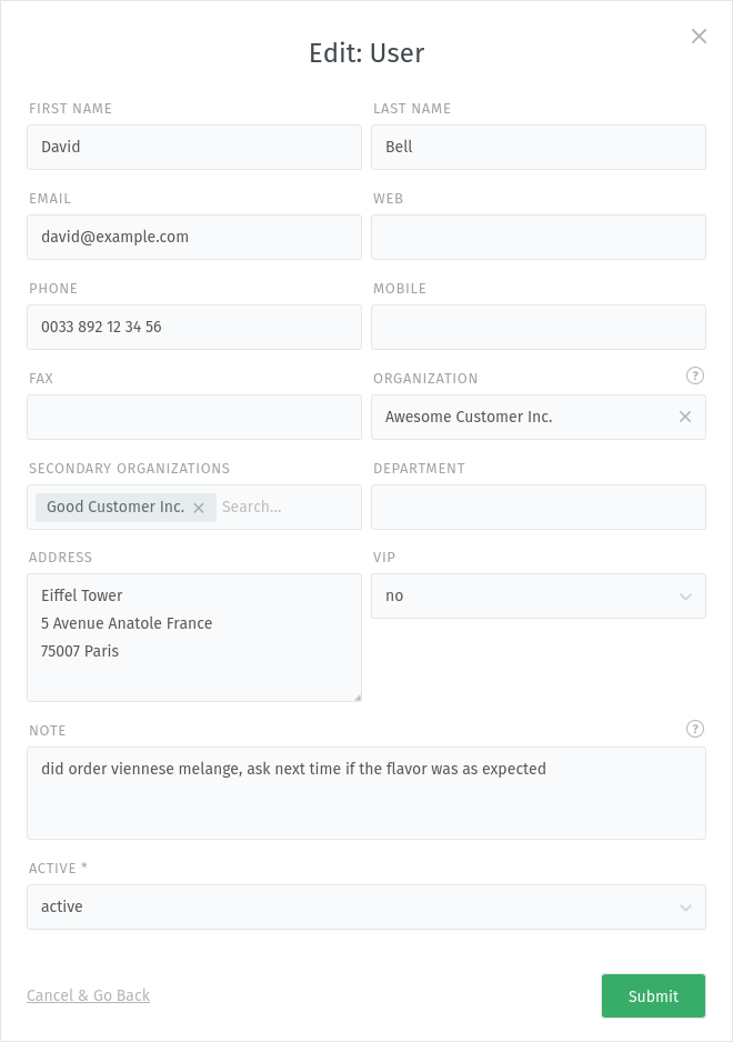 🏷️ metadatos de usuario/organización (p. ej., notas almacenadas en los perfiles de los clientes)