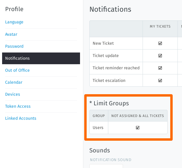 Los agentes pueden ver y editar tickets, pero no cambiar ninguna configuración que no sea la de sus propios perfiles.