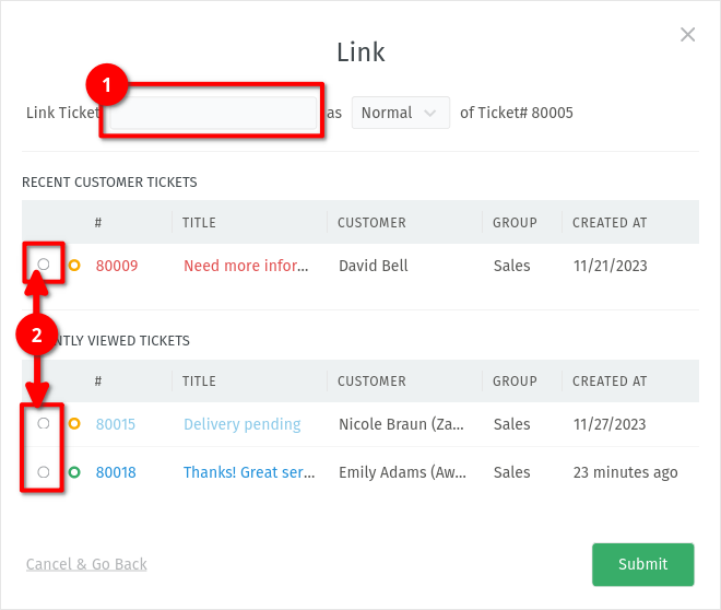 Más información sobre esta función en esta página: Vinculación de tickets.