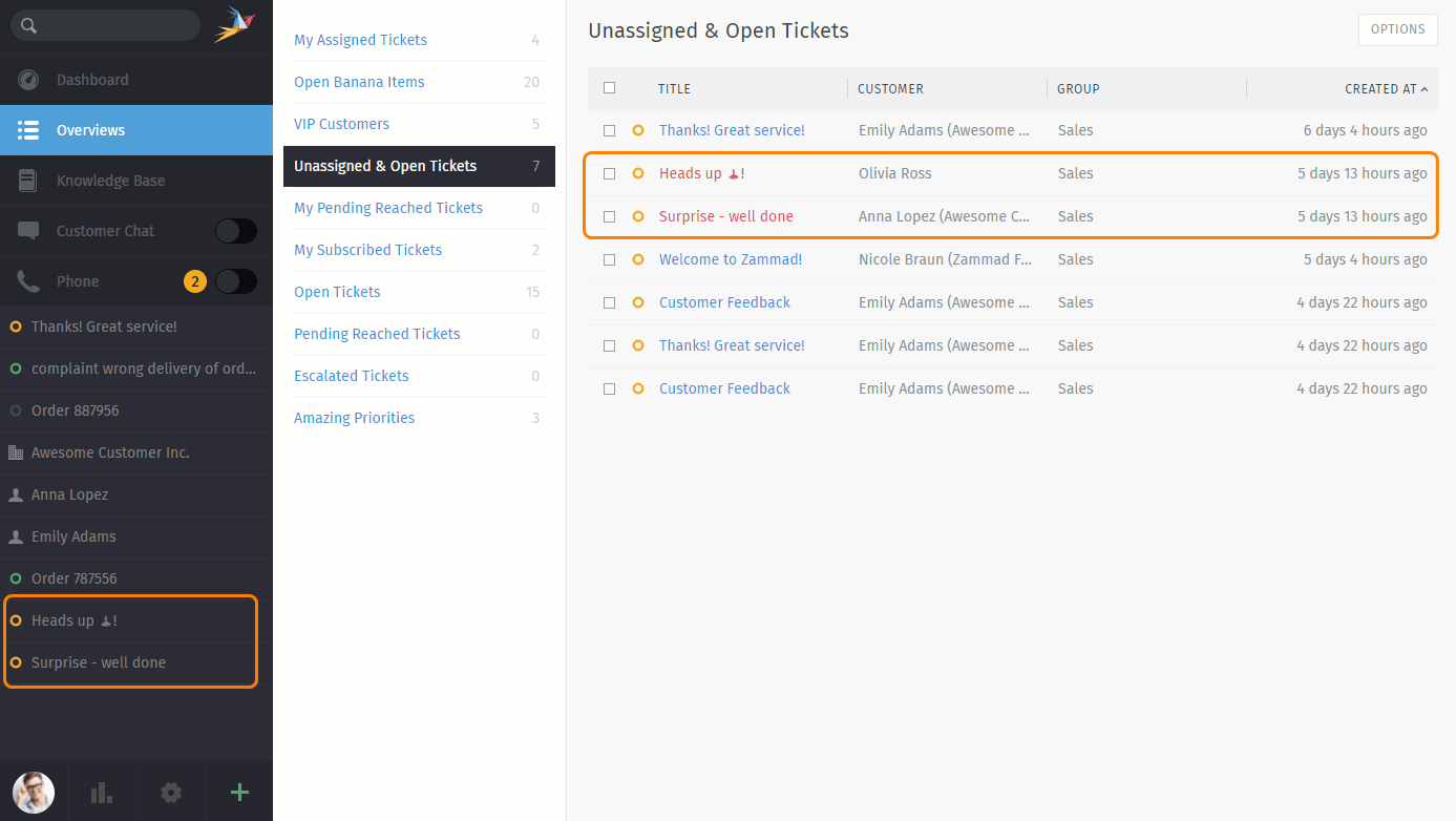 Piensa en las vistas generales como bandejas de entrada, cada una con un filtro diferente para los tickets que muestra.