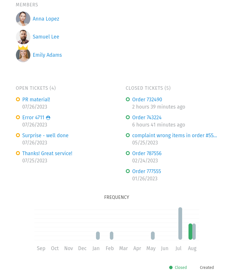Supongamos que tu organización utiliza SAIPRO tanto para ventas como para atención al cliente. Tienes diez agentes diferentes distribuidos en dos equipos, que manejan docenas de tickets al día.