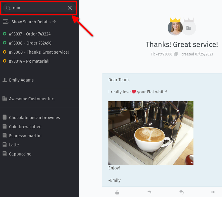 ¡No solo para tickets! Los resultados cubren 💬 registros de chat, 👨 agentes, y 🏢 organizaciones, también.