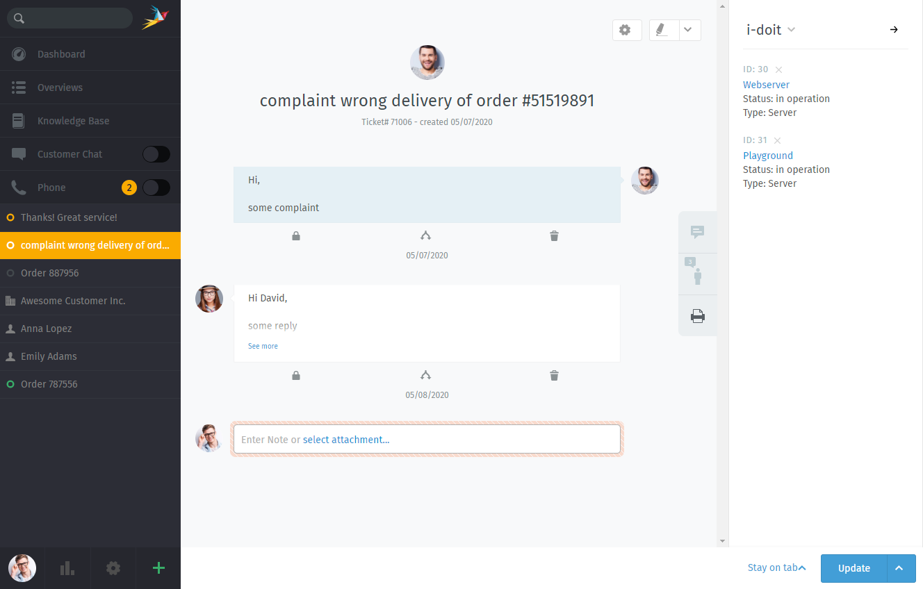 Los clientes pueden ver el estado de procesamiento de sus tickets en su interfaz de cliente individual.